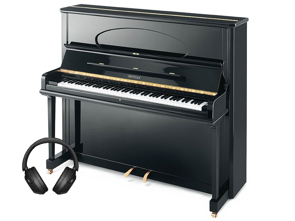 Overigens produceert Grotrian niet alleen klassiek zwart hoogglans, maar kan naar wens ook fraai beitsen en fineren in bijvoorbeeld walnoot, kersen, palissander of taxus.