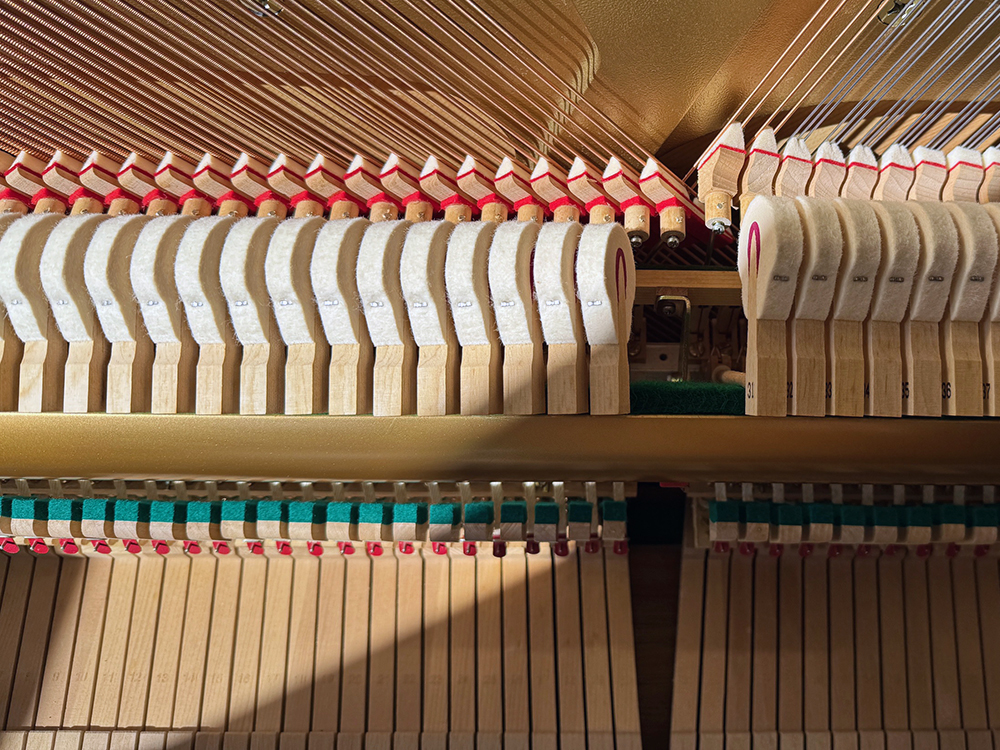 Voor de besnaring van een Yamaha B3e piano worden dezelfde staalsnaren gebruikt als voor de piano’s uit de fameuze U-serie! Ze worden afgenomen van een zeer betrouwbare Japanse toeleverancier. De bassnaren van de b-serie worden echter door Yamaha zelf gemaakt. Hiervoor wordt een kern gebruikt van een hoge kwaliteit staal die met koper wordt omwonden. Een speciaal ontwikkelde machine houdt de draad op de juiste spanning tijdens het spinnen, dat handmatig door speciale vakmensen wordt gedaan.
