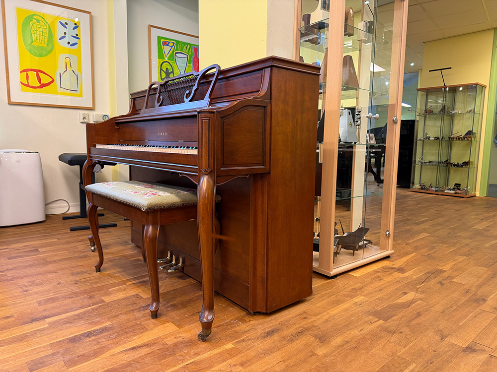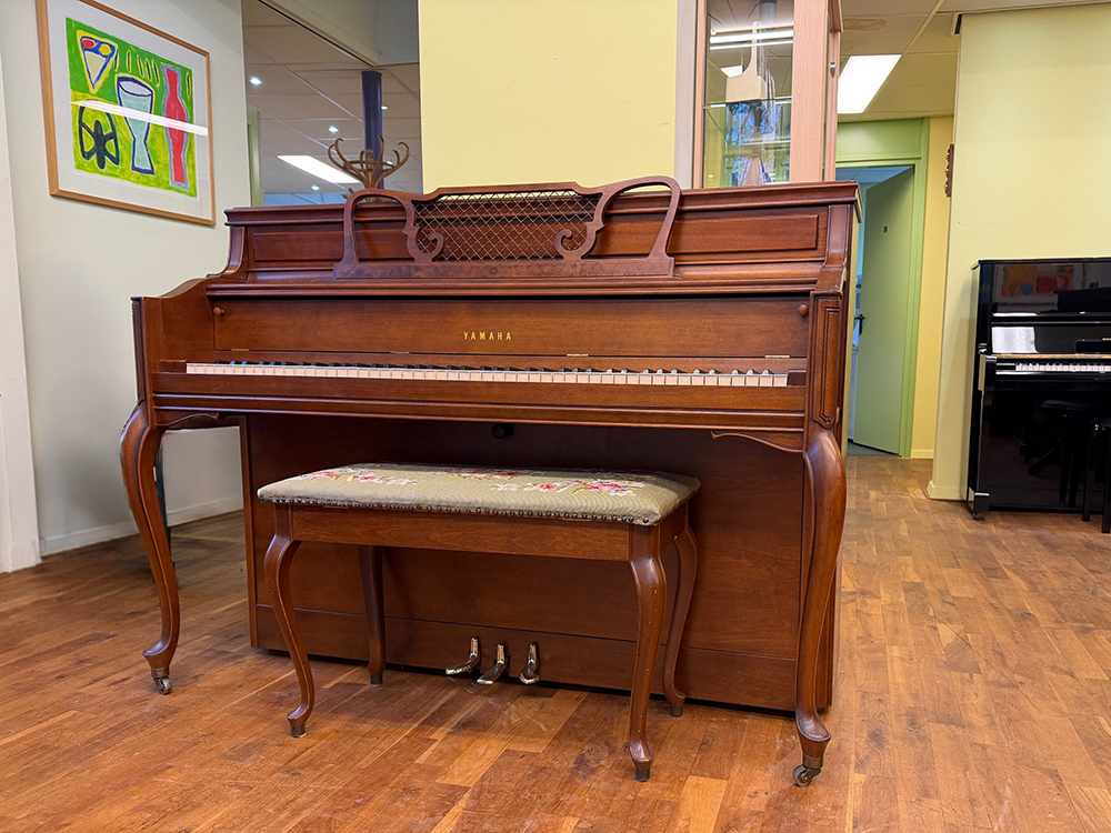 Een Yamaha M2H piano uitgevoerd in noten zijdeglans. Het meubel ziet er, in deze Amerikaanse uitvoering, prachtig uit. Ook qua techniek verkeerd deze piano in een goede toestand. De Yamaha M2H serie behoort tot de bekende en zeer veel verkochte Yamaha instrumenten in Amerika. De Yamaha M2H zoals de meeste Yamaha piano’s is een ijzersterke en betrouwbare piano die prima klinkt en speelt. Kom eens langs en overtuig u van dit mooie instrument in een zeer betaalbare prijsklasse. Luister eens naar de opname van deze piano!